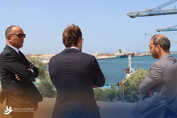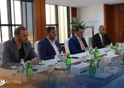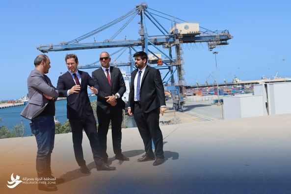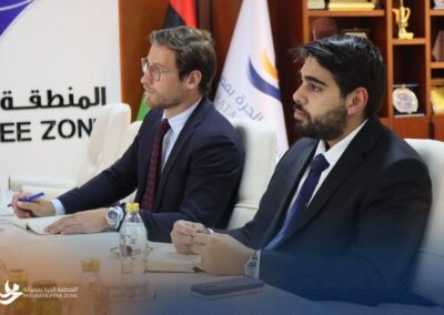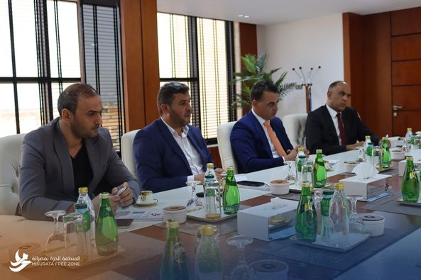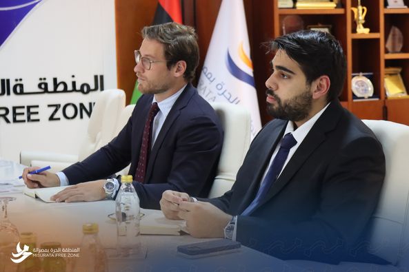 السيد رئيس لجنة الإدارة بالمنطقة الحرة بمصراتة م. محسن السقوطري والسيد المدير العام م. أيمن الدرويش يستقبلان القائم بأعمال الملحق التجاري لسفارة هولندا لدى ليبيا السكرتير أدريان فان فيلتوفن والوفد المرافق له.