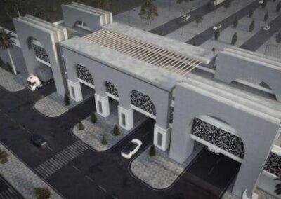 كما ستبدأ أعمال تنفيذ البوابة الحديثة لميناء المنطقة الحرة بمصراتة خلال شهرين بتصميم مشابه وذلك لتوحيد الهوية المعمارية.