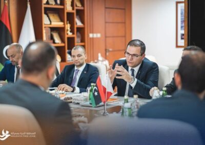 الاربعاء 16 نوفمبر 2022 | استقبل المهندس محسن السقوطري رئيس لجنة الإدارة والمهندس أيمن الدرويش المدير العام إلى جانب مدير عام الميناء وعدد من مديري الإدارات بالمنطقة الحرة بمصراتة وكيل عام وزارة الشؤون الخارجية والأوروبية والتجارة لجمهورية مالطا السيد كريستوفر كوتيار، وسفير جمهورية مالطا لدى ليبيا السيد تشارلز صليبا والوفد المرافق لهما.
