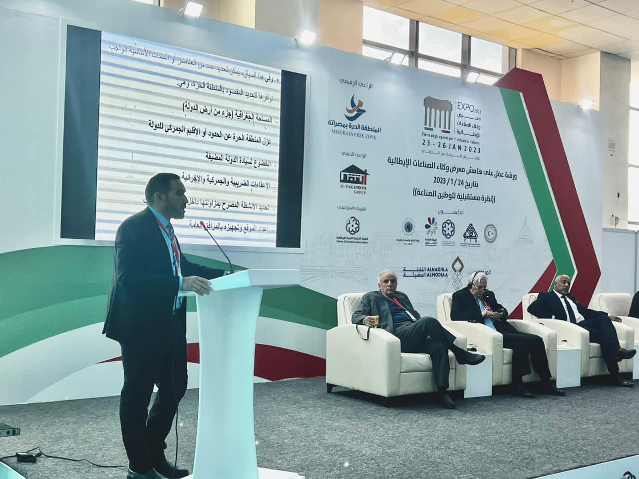 المنطقة الحرة بمصراتة الراعي الرسمي لمعرض وكلاء الصناعات الايطالية، والمقام على ارض معرض طرابلس الدولي خلال الفترة 23 – 26 يناير 2023 وبشراكة مع الغرفة التجارية الليبية الايطالية.
