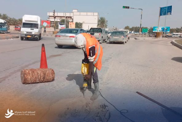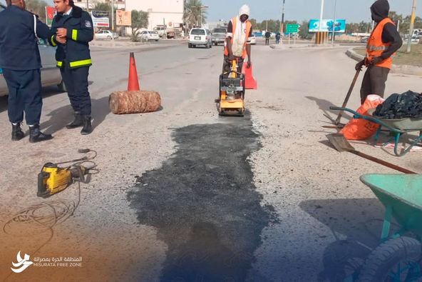 بمساهمة من المنطقة الحرة بمصراتة تستمر و للشهر الثالث على التوالي فرق صيانة الطرق التابعة لديوان بلدية مصراتة أعمالها في شوارع المدينة، بمعالجة الحفر والتشققات داخل نطاق الطرق الدائرية و الرئيسية بالبلدية بالتعاون مع مديرية أمن مصراتة.