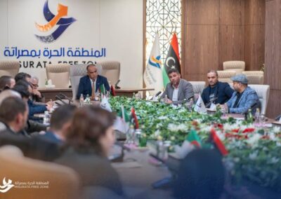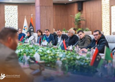 أختتمت هذة الزيارة بجولة ميدانية لمرافق المنطقة الحرة بمصراتة ومينائها البحري.